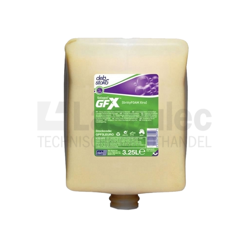 De einige heavy duty schuimhandreiniger met scrubmiddel. Licht geparfumeerde formulering zonder oplosmiddel met niet-schurende natuurlijke scrubmiddelen van maismeel en olijfpitten. De snelle en krachtige diepreinigende werking, gecombineerd met een aangenaam huidgevoel tijdens en na gebruik, zorgt voor zeer tevreden gebruikers. Voor gebruik in industriële omgevingen voor het effectief verwijderen van zeer sterke soorten vervuiling, zoals olie, vet, roet, smeermiddelen en vervuiling in het algemeen.